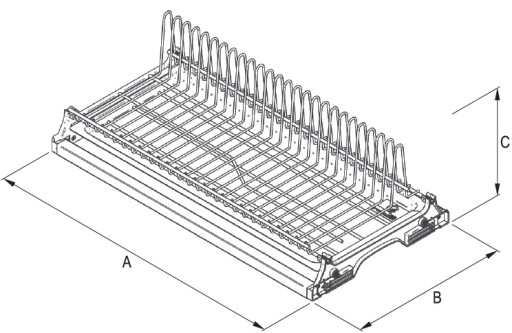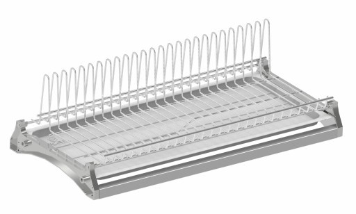Ociekarka meblowa jednopoziomowa montowana na stelażu. Suszarka w zestawie z tacką ,zbierającą opadającą wodę z mokrych naczyń. Montaż na stelażu zapewnia stabilność. Pojemna dzięki dużej ilości przegród na naczynia.