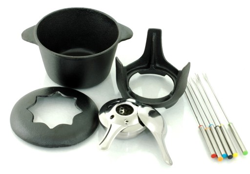 Чугунный НАБОР для кастрюли для фондю + 6 вилок, горелка