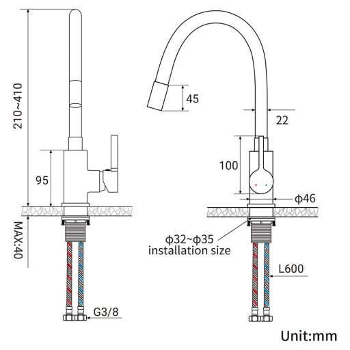 - w komplecie wężyki podłączeniowe G3/8 długości 500 mm