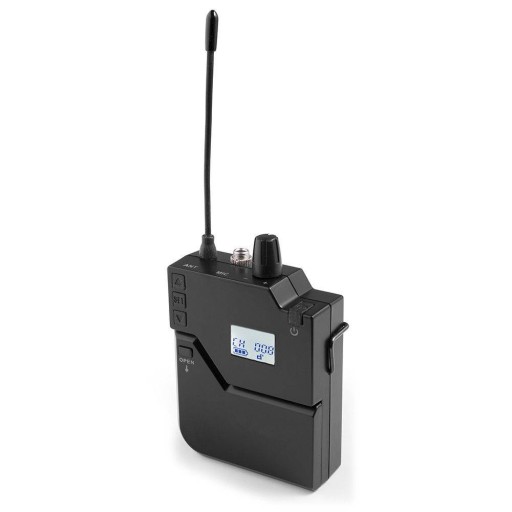 który zapewnia doskonałą transmisję dźwięku. Odbiornik wyposażony został w wyświetlacz LCD, regulację głośności oraz wejście XLR. Do urządzenia dołączono bezprzewodowy mikrofon doręczny oraz bodypack z mikrofonem krawatowym i nagłownym, co umożliwia wygodne korzystanie z zestawu niezależnie od okoliczności (np. na konferencji, prezentacji, treningu).