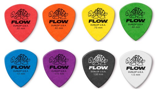 Wersja Standard Flow została zaprojektowana tak, aby połączyć kostki Tortex Standard z kostkami o zaostrzonej końcówce, co umożliwia bardziej precyzyjne granie na pojedyńczych strunach.