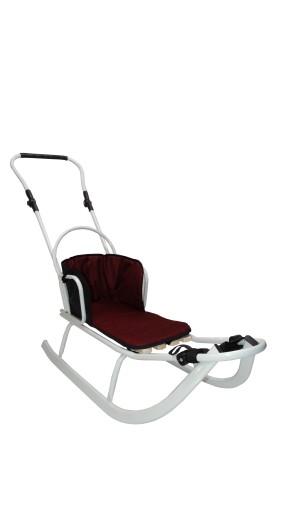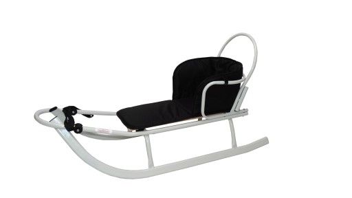 Металлические санки Kubuś со спинкой и толкачом + матрас