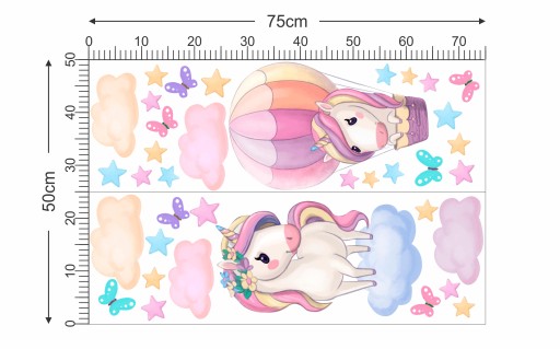 НАКЛЕЙКИ НА НАСТЕНУ С ЕДИНОРОГОМ 50x75см JT