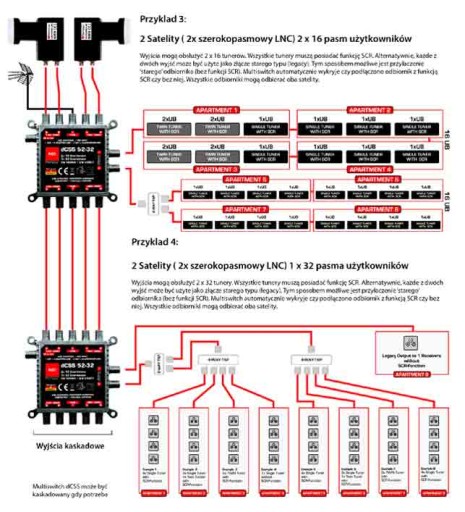 IDEALNY ROZWIĄZANIE DO ROZBUDOWY JUŻ ISTNIEJĄCEJ INSTALACJI DLA MINI SIECI W DOMKACH JEDNORODZINNYCH I PENSJONATACH - W TECHNOLOGI SCR, UNICABLE - PRZELOTOWO MOŻNA DODATKOWO PODPIĄĆ 32 ODBIORNIKI W SCR/UNICABLE I/II