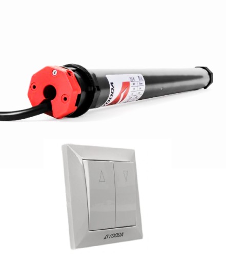 Rolety wyposażone są w silnik przewodowy - Silnik do rolet Yooda - posiada mechaniczne wyłączniki krańcowe. Standardowy napęd pozwalający na zautomatyzowanie pracy rolet. Możliwość podłączenia przełącznika klawiszowego bądź zewnętrznego odbiornika radiowego. Posiada mechaniczne wyłączniki krańcowe, które pozwalają na zatrzymanie silnika w ustawionej pozycji rolety