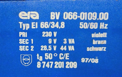 Transformator 9V 28,5V EL 66/34,8 BV066-0109.00 ERA