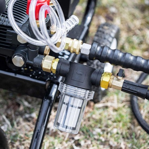 Filter the water flowing into the garden hose from the inlet to prevent debris or sediment from damaging the pressure cleaning pump;