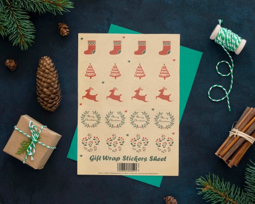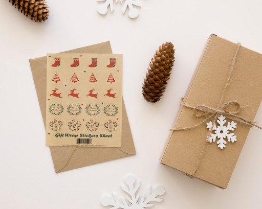 Ozdobne naklejki do pakowania prezentów z papieru ekologicznego.