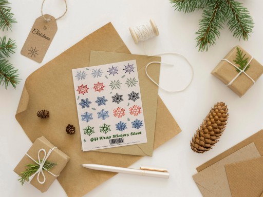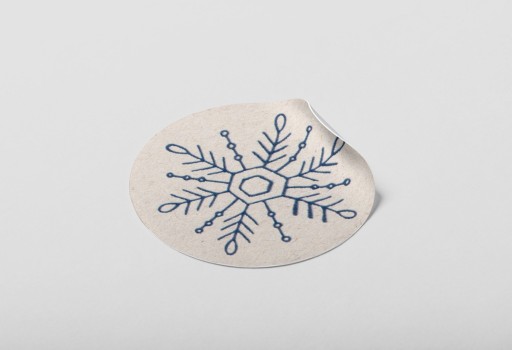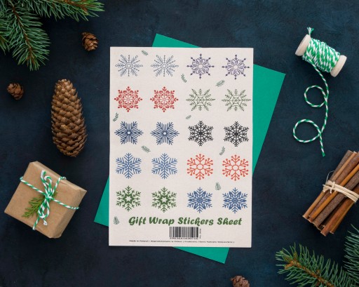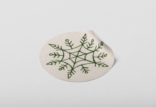 Naklejki do pakowania prezentów wykonane z papieru z recyclingu.