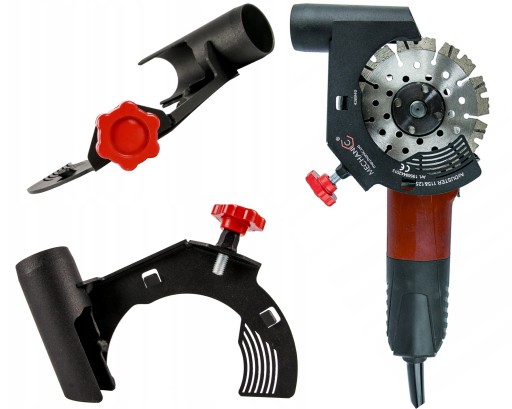 AirDUSTER 115/125mm to przystawka do szlifierki kątowej umożliwiająca odprowadzanie pyłów powstających podczas cięcia materiałów szlifierką kątową.
