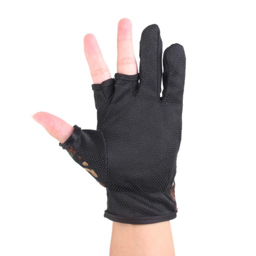Anti Slip Friction Palm 3 Low Cut Fingers Rękawice Wędkarskie 1 Para Kamuflażu