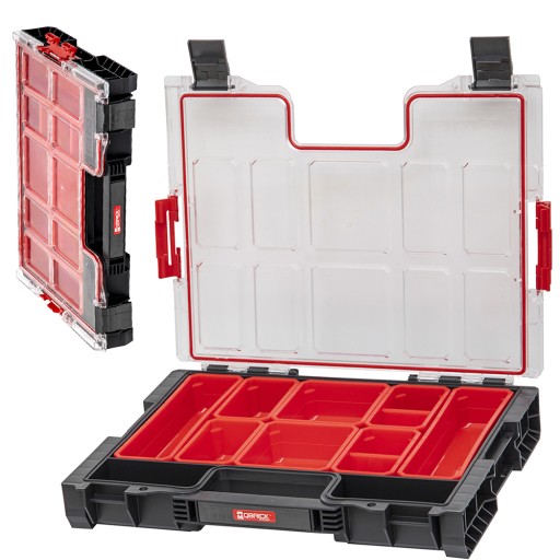 - Średniej wielkości w serii PRO organizer modułowy z wyjmowanymi pojemniczkami i dwoma stałymi przegrodami do segregowania i transportowania drobnych akcesoriów