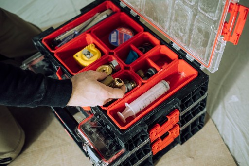 - Uszczelka – miękka guma pomiędzy pokrywą a korpusem skrzyni organizera, która niemal całkowicie chroni wnętrze przed wilgocią i kurzem