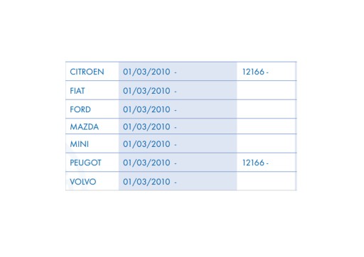 Płyn przeznaczony jest do pojazdów z tabeli poniżej :