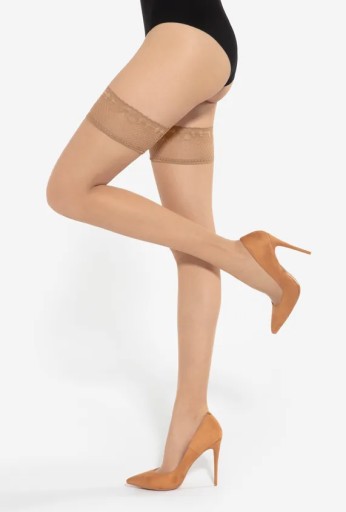 Praktyczne i delikatne, silikonowe paski stanowią gwarancję niezawodności pończoch samonośnych. Bardzo dobrze przylegają do ciała. Dzięki ich zastosowaniu materiał nie zsuwa się, ani nie marszczy. Silikonowe paski zostały zamaskowane szerokim paskiem dekoracyjnym - ze zmysłowej koronki.