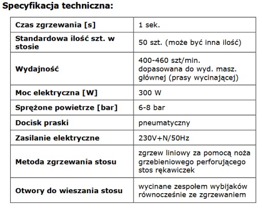- Przy korzystaniu z dodatkowej maszyny do zgrzewania i dziurkowania rękawiczek w stosie, konieczne jest wykonanie wykrojników z odpowiednim zapasem na zgrzew