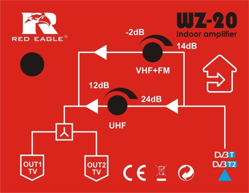 Wzmacniacz WZ-1 20dB przeznaczony jest dla domowych instalacji antenowych do wzmocnienia naziemnych sygnałów TV analogowych oraz cyfrowych w paśmie 5-862MHz.