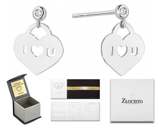KOLCZYKI Z BIAŁEGO ZŁOTA DIAMENTY SERCA WISZĄCE
