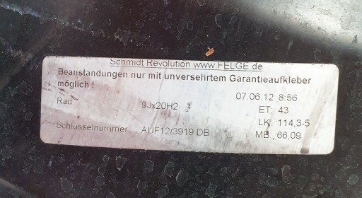 Przedmiotem sprzedaży jest oryginalna felga Schmidt pasująca do
