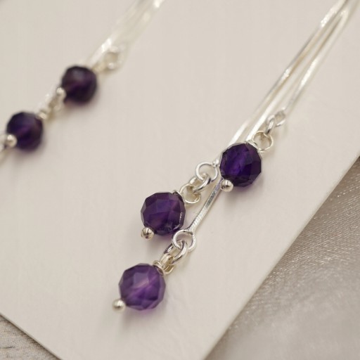Piękne,długie,Srebrne 925 kolczyki-ametyst