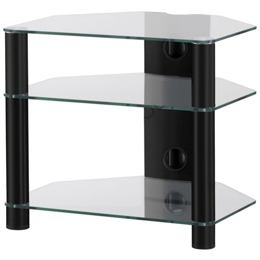 Idealny do każdego wnętrza aluminiowy stolik RTV ze szklanymi półkami na sprzęt audio-video. Blat stolika wraz z półkami został wykonany z płaskiego szkła hartowanego z polerowanymi krawędziami o bardzo dużej wytrzymałości.