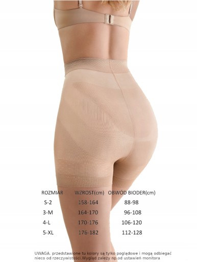 Majtki z efektem push up unoszą pośladki jednocześnie subtelnie spłaszczając brzuch. Ozdobna przedłużona nogawka zapobiega otarciom ud, optycznie je wyszczuplając w górnej części. Majtki łączą w sobie najlepsze walory bielizny modelującej i opasek przeciw otarciom ud.