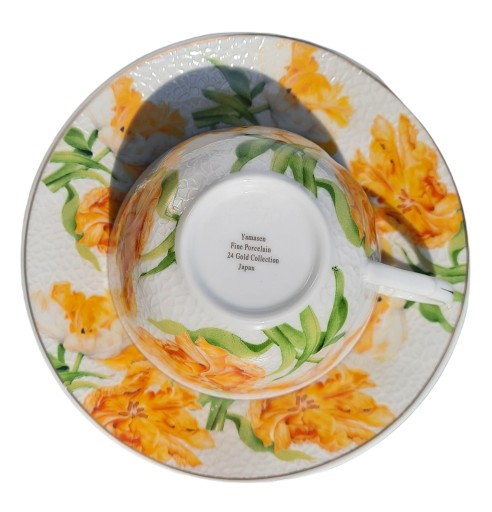 Komplet 6 filiżanek porcelanowych ze spodkami z Kwiatami Z cienkiej porcelany.