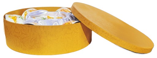 Filiżanki są zapakowane w eleganckie żółte okrągłe pudełko - idealnie nadają się na prezent.