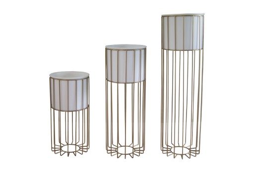 Metalowy kwietnik stojący z osłonką charakteryzuje ponadczasowy design. Doskonale wpasowuje się zarówno w nowoczesne, modernistyczne wnętrza jak i te klasyczne, w klimacie tradycyjnym.