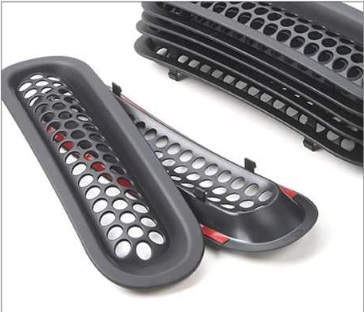Wykonane z najwyższej jakości tworzywa motoryzacyjnego ABS w czarnym kolorze. Montaż jest łatwy i bezpieczny, odbywa się przy pomocy samoprzylepnych pasków i zaczepów, które znajdują się na wewnętrznej stronie nakładek. Wystarczy odkleić taśmę, przyłożyć w odpowiednie miejsce i docisnąć. Miejsca montażowe należy odtłuścić benzyną ekstrakcyjną lub spirytusem. Nakładać w temperaturze powyżej 18 st.C.