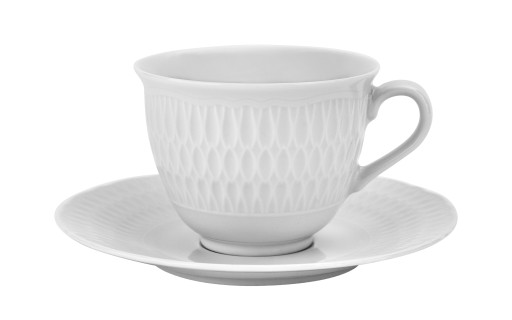 Porcelanowa filiżanka ze spodkiem o poj. 250ml z kolekcji Sofia w kolorze białym.