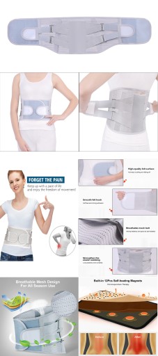 Ten pas lędźwiowy jest wykonany z lekkiego, oddychającego materiału neoprenowego o oddychającej strukturze siatki. Dopasowany do ciała, może być noszony pod ubraniami lub na ubraniach.