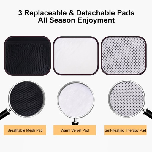 - Wyposażony w 3 wymienne i odpinane podkładki do uniwersalnych efektów leczenia i przyjemność przez cały sezon.