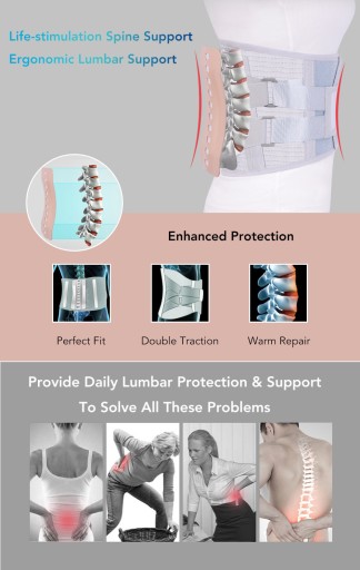 - Pomocnicze płyty podtrzymujące ABS i metalowy wspornik z wzmocnionymi wytrzymałymi sprężynami umożliwiają dodatkową stabilność, zapewniając podwójną ochronę talii, skutecznie pomagając zmniejszyć ciśnienie w talii i ból, a także mogą uniknąć zaniku mięśni.