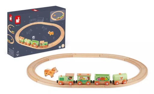 Pociąg drewniany z torami Farma Story 3+ Janod