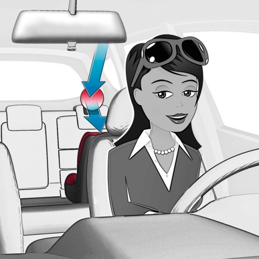 - Przewożąc dziecko z tyłu w foteliku ustawionym tyłem do kierunku jazdy często odczuwamy dyskomfort, gdyż nie widzimy dziecka. Rozwiązaniem problemu jest montaż na tylnym zagłówku dużego lusterka, dzięki któremu dziecko będziemy mogli mieć stale "na oku".