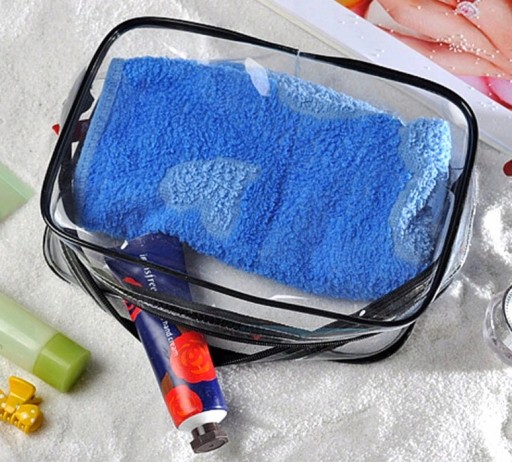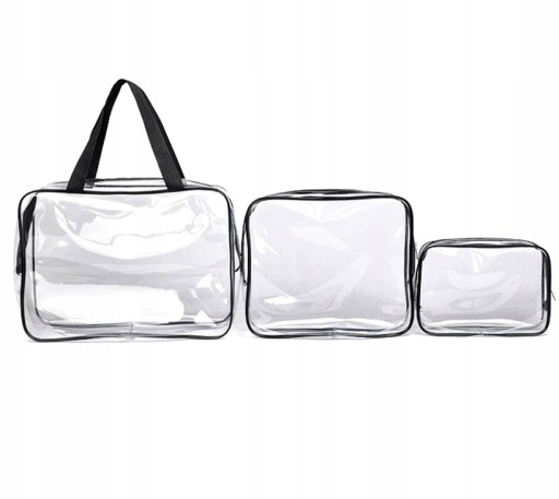 Komplet składa się z trzech kosmetyczek z przezroczystego plastiku PCV