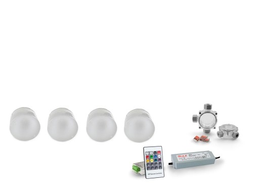 ZAWARTOŚĆ ZESTAWU: 4x LedColor ROUND; 1x Zasilacz LED; 1 x Sterownik RGB radiowy