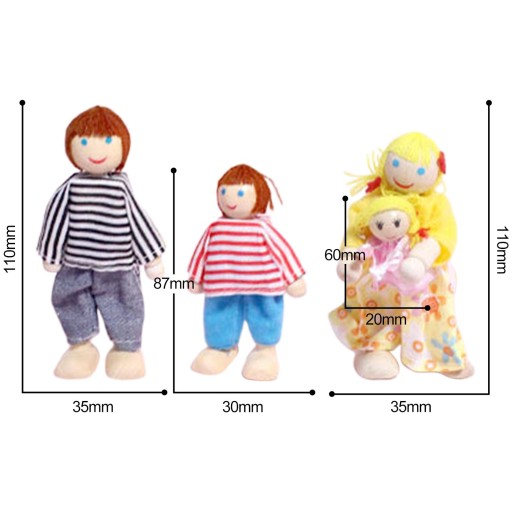Lalki wykonane są z drewna, z ubraniami z materiału Piękny doskonałe wykonanie, odpowiednie do miniaturowego domku dla lalek