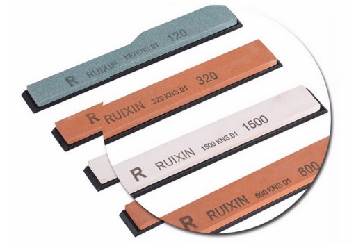 Zawiera kamienne ostrzałki o różnej ziarnistości, dzięki którym możemy uzyskać idealną powierzchnię ostrza.