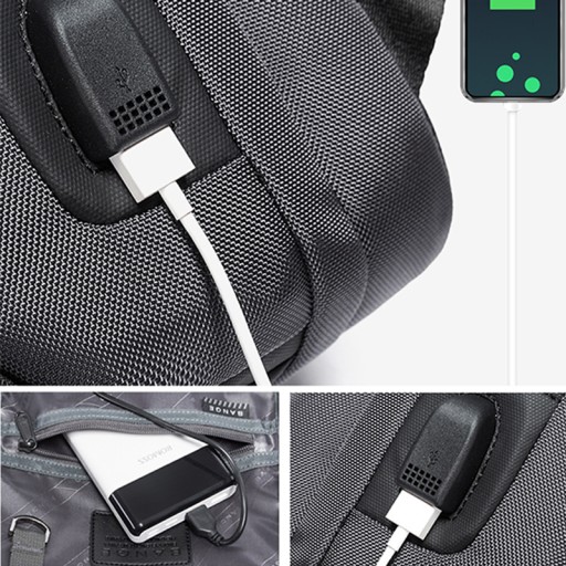 Za pomocą zewnętrznego wyjścia USB możesz naładować swój smartfon bez potrzeby otwierania plecaka.