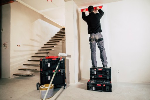 Ogromną zaletą skrzynek Qbrick System One jest możliwość wykorzystywania ich jako podwyższenie lub podest zamiast drabiny, gdyż ich pokrywa wytrzymuje do 120kg obciążenia.