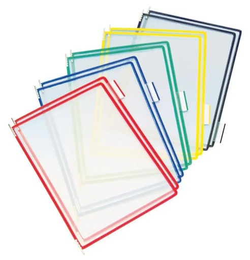 Panele wykonane są według opatentowanej technologii firmy Tarifold. Specjalny stalowy drut powleczony kolorowym tworzywem powoduje, że panele są bardzo elastyczne i zarazem wytrzymałe na wszelkiego rodzaju zgięcia. Matowy materiał PVC eliminuje refleksy świetlne ułatwiając czytanie nawet przy bezpośrednio padającym świetle. Dostarczane są w opakowaniach po 10 sztuk wraz z 5 zakładkami indeksującymi umożliwiającymi organizację prezentowanych treści.