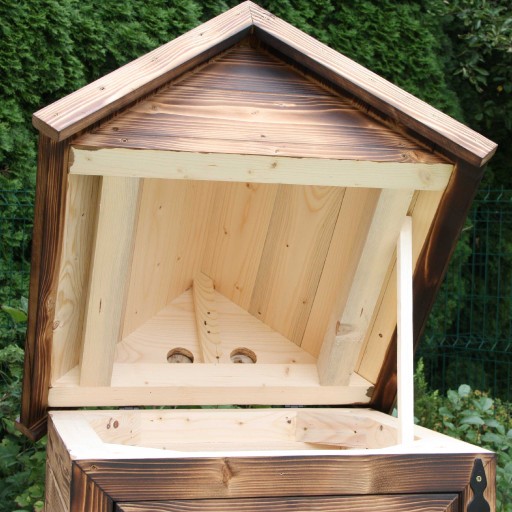 - DREWNIANA KOMORA WĘDZARNICZA o wymiarach zewnętrznych 59x59x125 + wysokość daszku ok 40cm