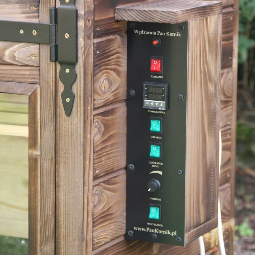 - Wędzarni w pełni zautomatyzowana. Stałą zadaną temperaturę pilnuje grzałka o mocy 2000W sterowana regulatorem PID. Takie rozwiązanie zapewnia najlepsze możliwe ustabilizowanie temperatury w wędzarni. Dodatkowo zastosowaliśmy podwójny deflektor dzięki, któremu zachowujemy niewielkie zużycie prądu.