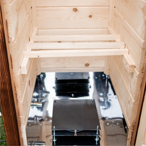 - Drewno niemalowane co zapewnia, że wędzone produkty nie przesiąkną zapachem farby.
