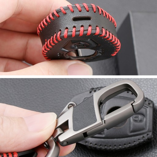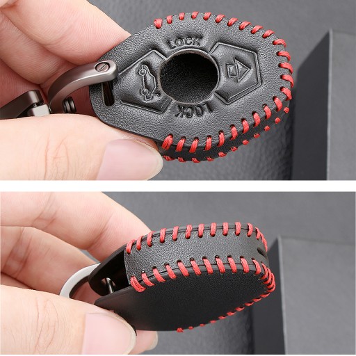 W ofercie posiadamy ręcznie szyte etui, odpowiadające kluczykom wszystkich marek i modeli samochodów osobowych i nie tylko. Kluczyki zostały wykonane z naturalnej skóry w kolorze czarnym, obszywanej grubą, czerwoną nicią.Do każdego etui przymocowany jest praktyczny stalowy karabińczyk, lakierowany na tytanowy kolor.