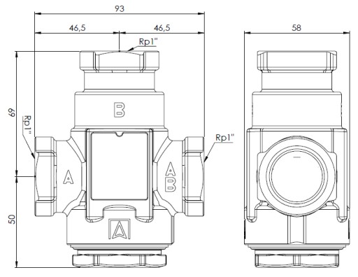 Zawór temperaturowy ATV 336, DN25, Rp1", kvs 9, 60°C AFRISO