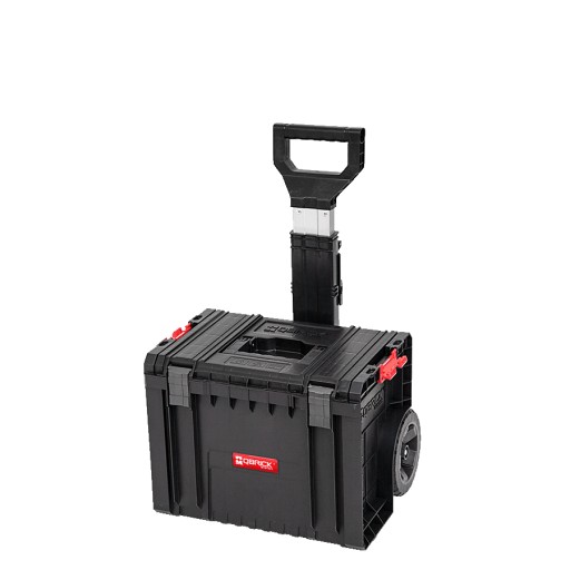 Qbrick System PRO Cart to mobilna skrzynia na kołach z teleskopową, aluminiową rączką, będąca jednocześnie bazą dla nowej, wielomodułowej i najbardziej kompaktowej linii PRO. Skrzynka posiada duże koła pokryte gumą zamontowane na metalowej osi.