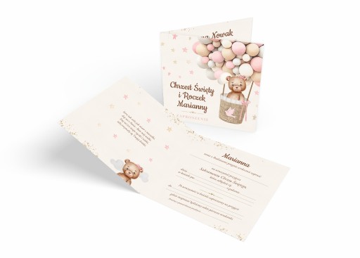 ZAPROSZENIA NA CHRZEST I ROCZEK Z MOTYWEM BOHO MISIA